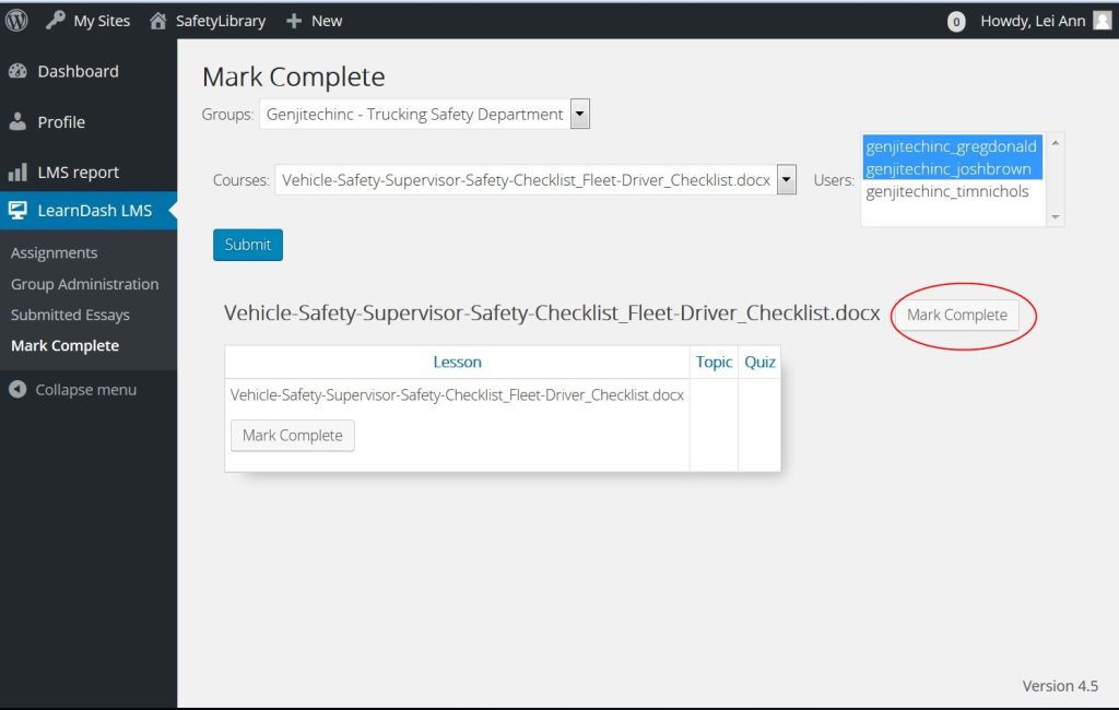 With the mark complete feature you can simply select the employees and mark them all for completion of training with a few clicks of a button.
