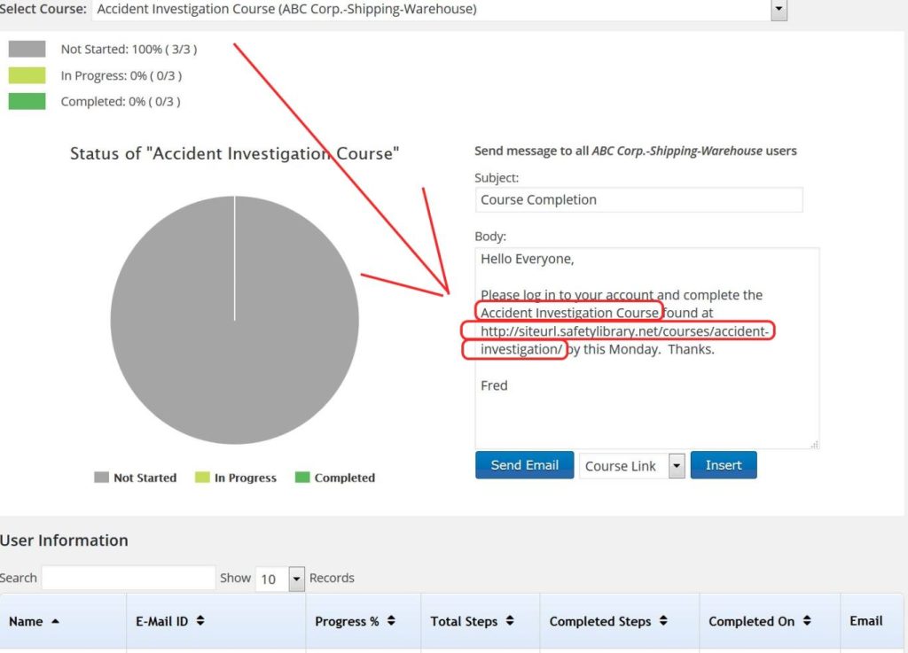 Inside the reporting section is also the notification system that is used to notify employees of upcoming training.