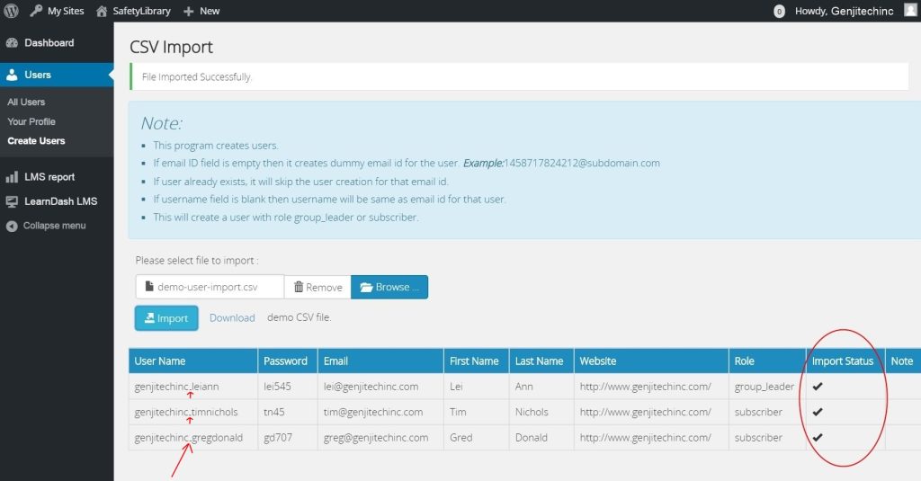 Use the simple csv import fuction to import a small or large list of employees to the training system.